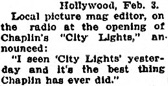 opening of Chaplin‘s „City Lights,“ announced: „I seen
