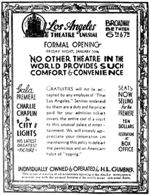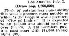 Editorial content. „City Lights and $50,000, 1st Wk., L. A.“ (...)