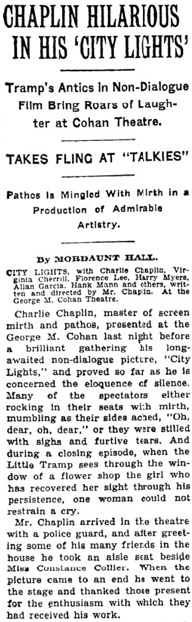 City Lights opens in New York February 6, 1931