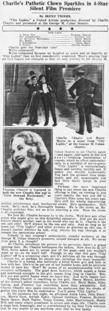 Editorial content. „CHAPLIN‘S ,CITY LIGHTS‘ BRILLIANT