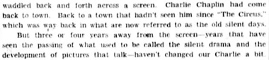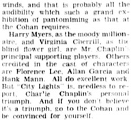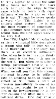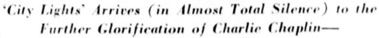Editorial content. „Chaplin‘s New Film, ,City Lights,‘ Heads