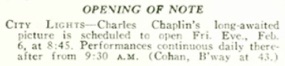 City Lights United Artists Geo. M. Cohan Feb. 6“