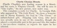 Charlie Chaplin‘s new leading woman is a blonde, and her