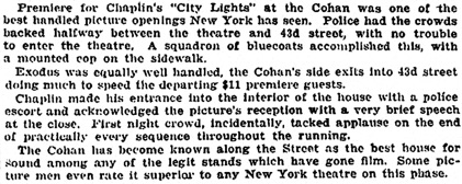 „Premiere for Chaplin‘s City Lights at the Cohan was