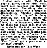 disappointers fetching comments. Chaplin‘s City Lights is doing business, but not as briskly as would be expected.“ (...)