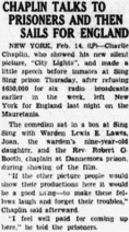 NEW YORK, Feb. 14. (UP) – Charlie Chaplin, who showed