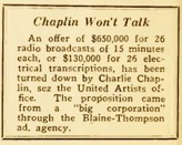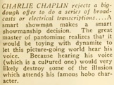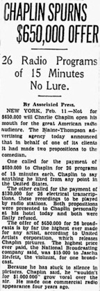 Editorial content. „Chaplin Spurns $650,000 Offer