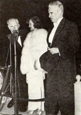 & Paulette Goddard and Charlie Chaplin say a few words into