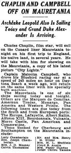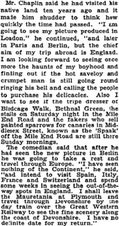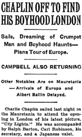 & CHAPLIN OFF TO FIND HIS BOYHOOD LONDON