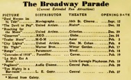 City Lights; United Artists; Geo. M. Cohan; Feb. 6