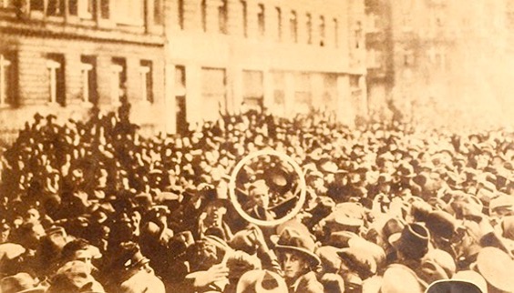 riesige Menschenmengen auf Chaplins Ankunft. Als dann