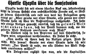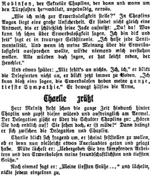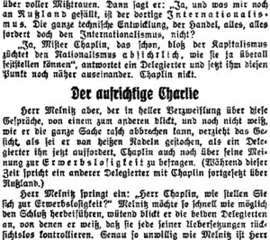 Redaktioneller Inhalt. „,Die Rote Fahne‘ bei Charlie Chaplin.“ (...)
