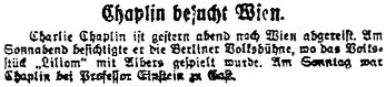 Redaktioneller Inhalt. „Chaplin in Wien eingetroffen