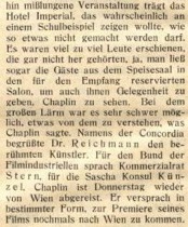 Künstler. Für den Bund der Filmindustriellen sprach Kommerzialrat Stern, für die Sascha Konsul Künzel. Chaplin ist