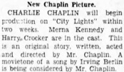 Charlie Chaplin will begin production on City Lights
