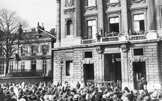 & Fans in front of the Hotel Crillon with Charles Chaplin
