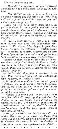 Editorial content. „Charles Chaplin m‘a dit...