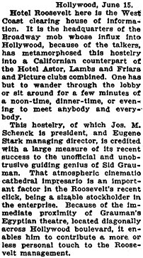 & In The Heart Of The Film Capital (...) Roosevelt Hotel (...)