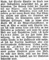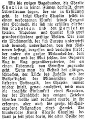 in Erfüllung geht, so trägt Charlie Chaplin selbst in einem