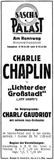 Ereignis ist es zu werten, dass Chaplin das erstemal vor dem Tonfilmmikrophon erschien, um seine Wiener Verehrer