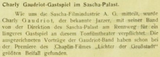 & Charly Gaudriot-Gastspiel im Sascha-Palast.