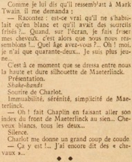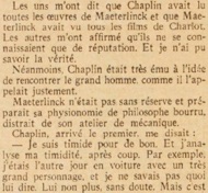 Editorial content. „EN DÉJEUNANT AVEC CHARLIE CHAPLIN