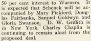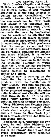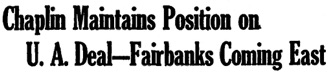 & Chaplin Maintains Position on U. A. Deal – Fairbanks