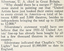Silverstone indicated that Chaplin‘s City Lights had grossed $1,000,000 to date in England.“