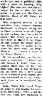 Miss Shepherd referred to an invitation from Premier Ramsay