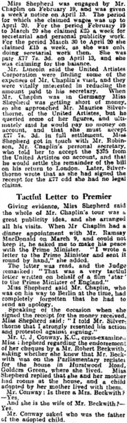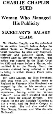 The suit of Miss May Shepherd against Charlie Chaplin for