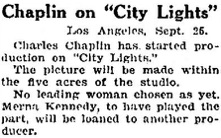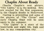 Charlie Chaplin‘s next picture, „City Lights,“ is in the