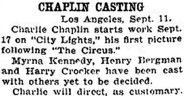 Charlie Chaplin starts work Sept. 17 on „City Lights,“