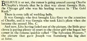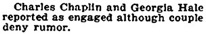 Editorial content. „Charlie Chaplin and Georgia Hale reported