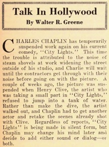 Lights“ into a talking picture, despite all his previous denials to the contrary. It may also be filmed in color, it is said.“
