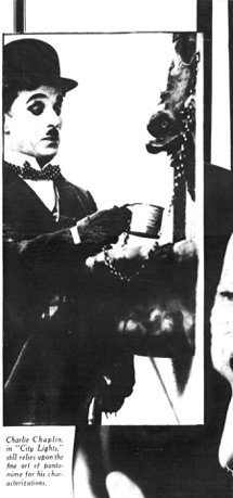 Photo. Charlie Chaplin in „City Lights,“ still relies upon
