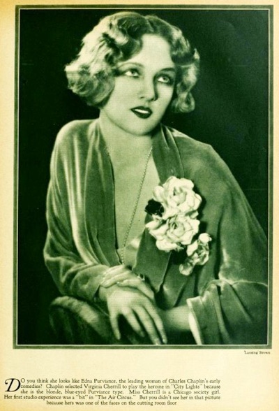 Chaplin selected Virginia Cherrill to play the heroine in City Lights because she is the blonde, blue-eyed Purviance-type.