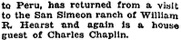 returned from a visit to the San Simeon ranch of William R. Hearst