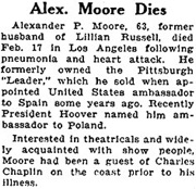 & Alex. Moore Dies (...) Variety, Feb. 19, 1930