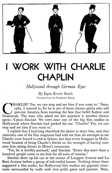 & Egon Erwin Kisch, Arbeit mit Chaplin, Frankfurter Zeitung,