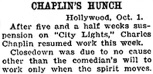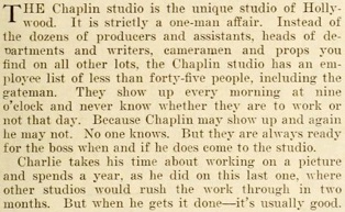 Editorial content. „Chaplin Film Half Done;