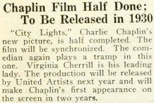 City Lights, Charlie Chaplin‘s new picture, is half