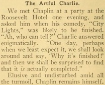 „City Lights,“ was likely to be finished. „Ah, who can tell?“