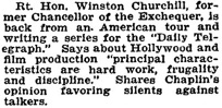 A. At present it is said that Mr. Chaplin does not contemplate making a talking picture. He is now engrossed in work