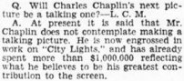 & Q. Will Charles Chaplin‘s next picture be a talking