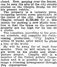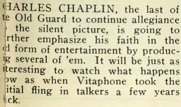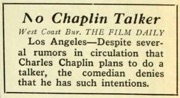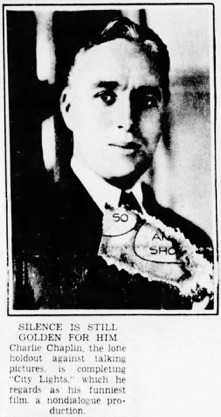 (...) Chaplin plans Production of Silent Pictures Only, Boston Globe, Boston, Mass., March 11, 1930