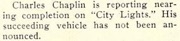 & Charles Chaplin is reporting nearing completion on „City Lights.“