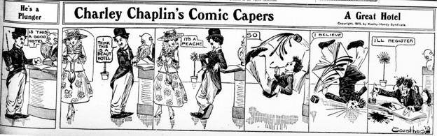 Elzie Crisler Segar, creator of Popeye, is drawing „Charley Chaplin‘s Comic Capers“ for the Chicago Herald.