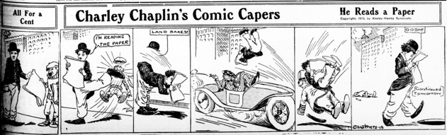 Elzie Crisler Segar, creator of Popeye, is drawing „Charley Chaplin‘s Comic Capers“ for the Chicago Herald.