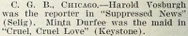 & C. G. B., CHICAGO. – (...) Minta Durfee was the maid in Cruel,
