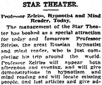 Professor Zelriss, Hypnotist and Mind Reader, Today.